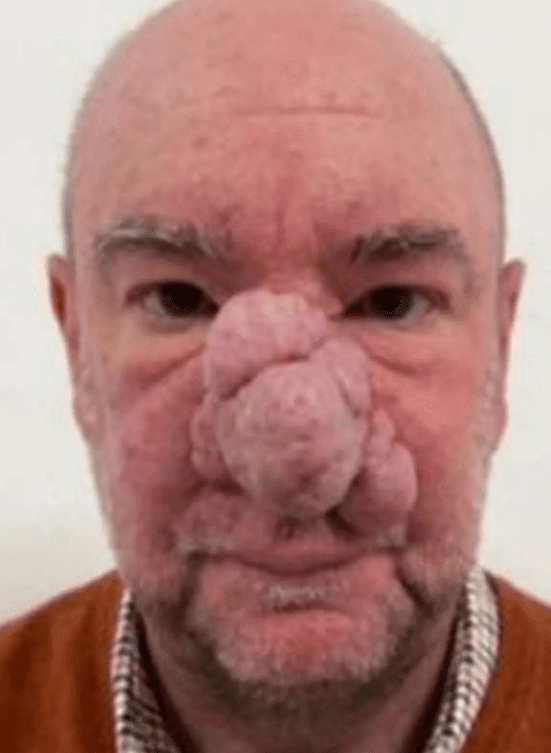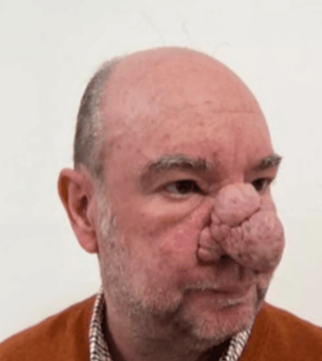 For years, Alan Findlay, a 56-year-old man from Dumbarton, lived in quiet agony. His life was overshadowed by rhinophyma—a painful, disfiguring skin condition that distorted his nose and stripped away his confidence. Once outgoing and full of laughter, Alan began to retreat from the world. Every reflection in the mirror became a reminder of what he’d lost, and slowly, the vibrant man he used to be faded into silence.