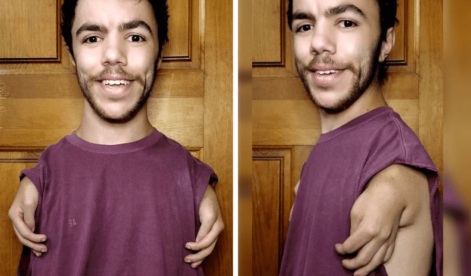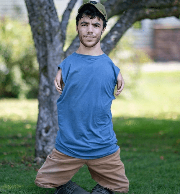 Colby is 24 years old and lives in Georgetown, New York. He was born with a rare genetic condition called thrombocytopenia absent radius syndrome, often referred to as TAR. The condition affects fewer than one in one hundred thousand births. In Colby’s case, it meant being born without arm bones and without knee joints. From the very beginning, his body followed a different design.