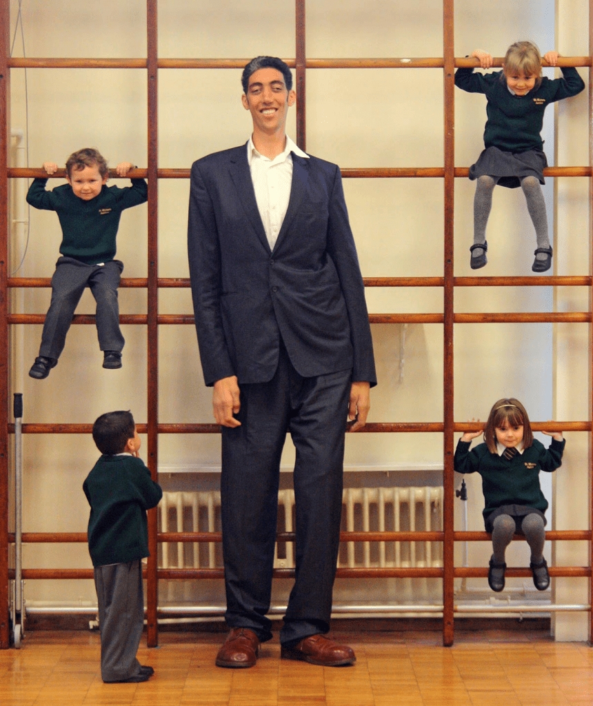 Sultan doesn’t just hold the title of tallest living man; he also holds the record for largest hands and previously for largest feet. His unique proportions have fascinated scientists, filmmakers, and fans across the globe.