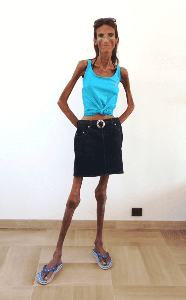 Now in her late 30s, Valeria’s appearance is shocking not because of fashion or style, but because of the fragility her body reveals. Weighing less than 60 pounds at her lowest point, her story has often made headlines, sparking concern and conversation across the globe.