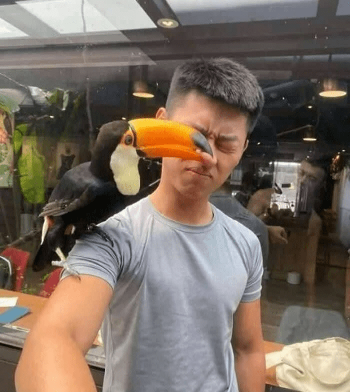 A bird looks like it’s standing up to a bully in a perfectly timed shot that inspired the caption “Toucan, not a Toucan’t.”
