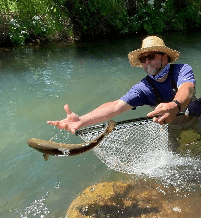 A fisherman loses his catch just as the camera clicks, capturing frustration and disbelief perfectly.