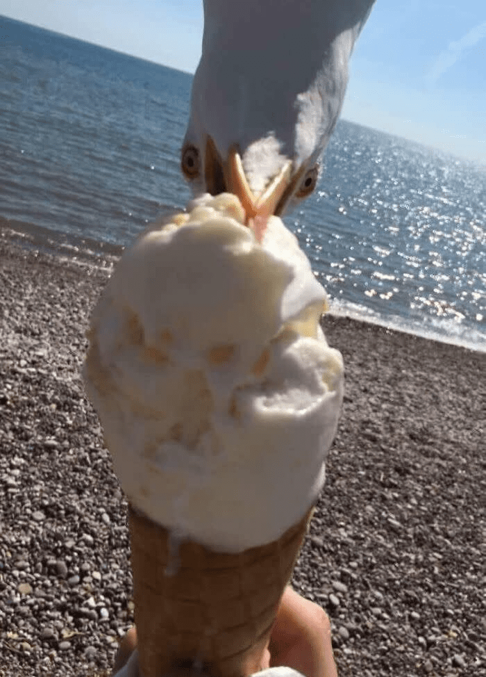 A calm beach photo that turned chaotic the moment someone slipped or got hit by a wave. Pure summer slapstick.