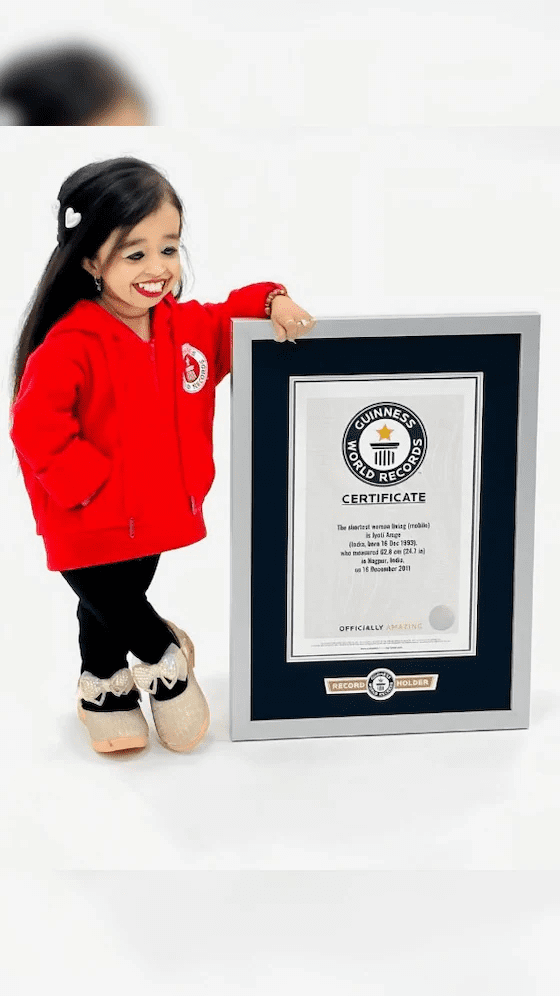 With a height of just 62.8 cm (2.05 ft), Jyoti Amge holds the Guinness World Record for being the shortest living woman on Earth. Born in Nagpur, a city in India’s Maharashtra state, Jyoti’s story is not just about her extraordinary size—it’s about resilience, dreams, and the power of embracing who you are.